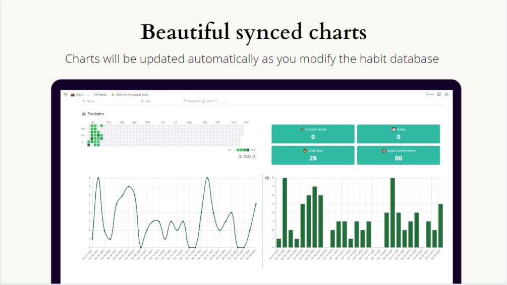 Momentum is a habit tracker that helps you to build good habits, break bad ones, reach your goals and keep motivated with streaks and charts. All on Notion.